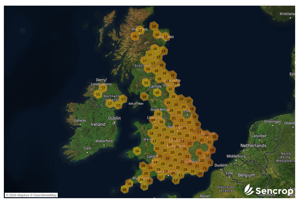 In early April, temperatures in the United Kingdom soared to over 20°C. However, this warmth was short-lived, as temperatures quickly plummeted, dropping below 0°C in numerous regions. Across the Sencrop network, hundreds of stations recorded temperatures close to freezing, especially in the area between Oxford and Canterbury. In some instances, thermometers even dipped as low as -2°C in the far Southeast of the United Kingdom on recent mornings