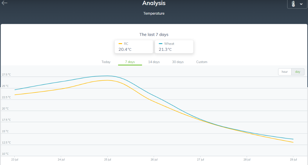 Alister has been farming at Chivers for over 12 years. With 1000 hectares of combinable crops to farm including wheat, rape, barley and beans, he and his team made the decision to use one weather station (a Raincrop rain gauge) on-site, and another in a remote location. Alister and his colleagues have set up independent accounts within the application that are all connected to the same station, receiving identical data. The advantage to having their own accounts is that each farm staff member can set the alerts and cumulatives that are pertinent to their work. With the ability to connect to nearby farms using the Sencrop network, they are also able to exchange data with another local farmer.