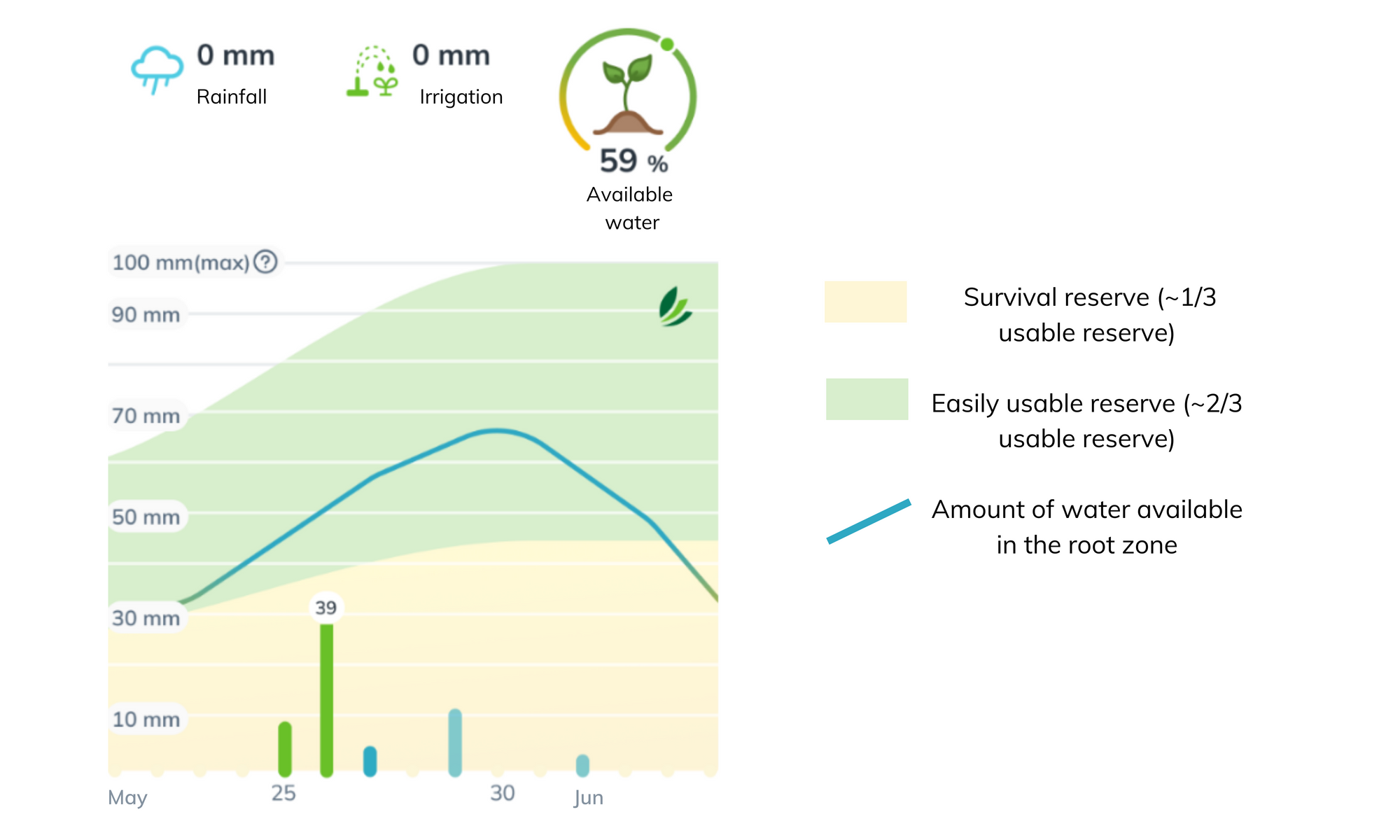 By entering the actual stage of growth in the Sencrop application (go to the "Crops" tab), the crop coefficient and root depth used in the calculation of evapotranspiration and water availability are automatically adjusted.