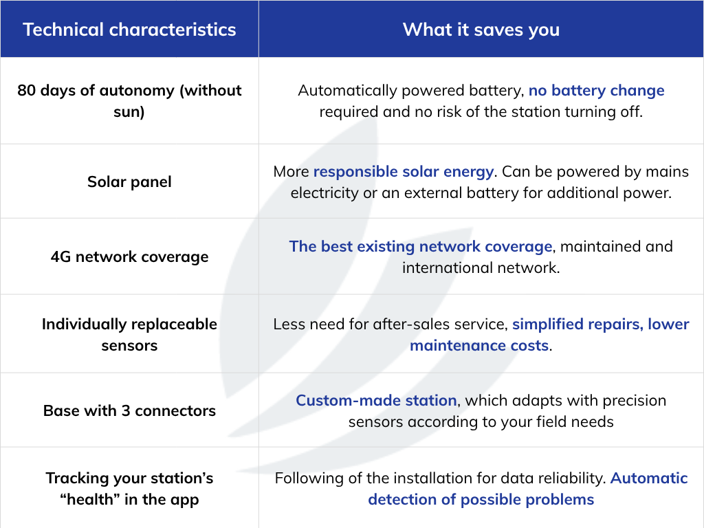 And because reliable data is essential without properly installed stations, we are also improving the monitoring of your installation. With the new generation of weather stations, we are now able to monitor more elements and offer you several monitoring options:
