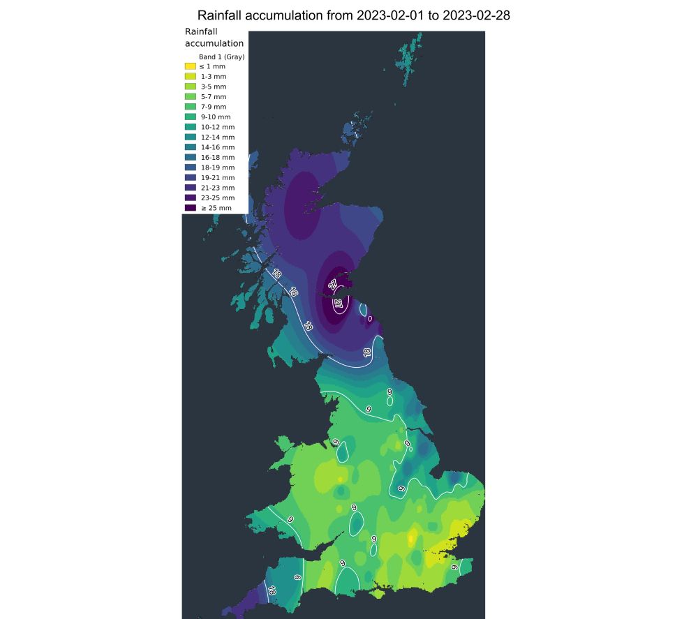 While the lack of rainfall is impressive, February 2023 was one of the mildest February's on record in the UK with an average temperature of 5.8°C. Even worse in Scotland, with February being the third warmest February on record, fourth place for warmest winters was Northern Ireland.
