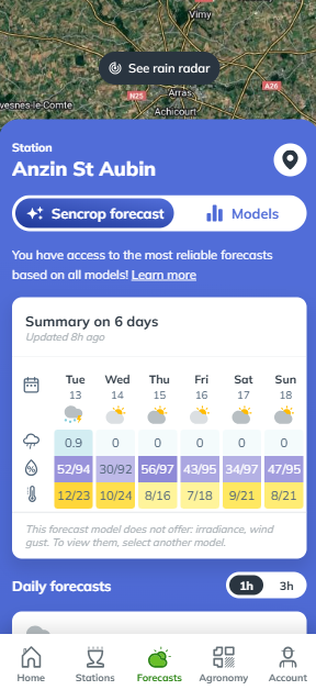 With thousands of Sencrop stations installed across Europe, a wealth of valuable weather data is collected daily — from humidity levels and rainfall over the past 24 hours to wind-affected regions. This data provides a precise, localised snapshot of current weather conditions.